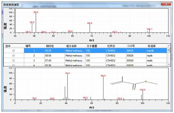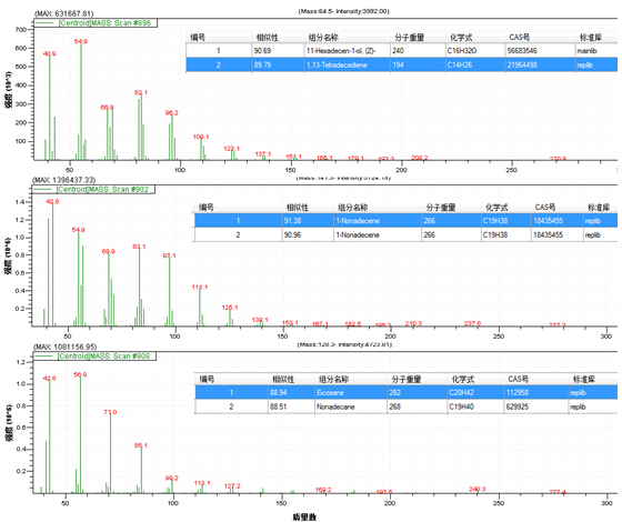 圖2.3 三重峰的質(zhì)譜圖(圖2.2中8.6~8.9 min)經(jīng)NIST2014庫(kù)確認(rèn)