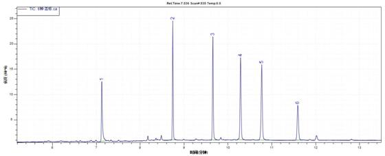 進樣口溫度:280℃;氣質接口溫度:280℃;離子源溫度:250℃;