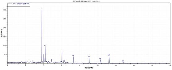 測定方式:TIC(FULL SCAN)定性(掃描范圍:45-450amu),SIM模式定量。
