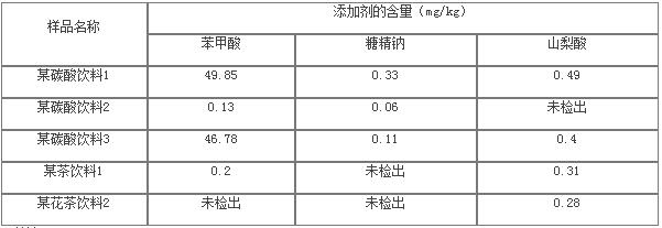 表9 汽水及飲料中食品添加劑的檢測