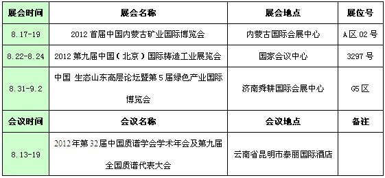 天瑞儀器2012年8月份展會、會議預(yù)告